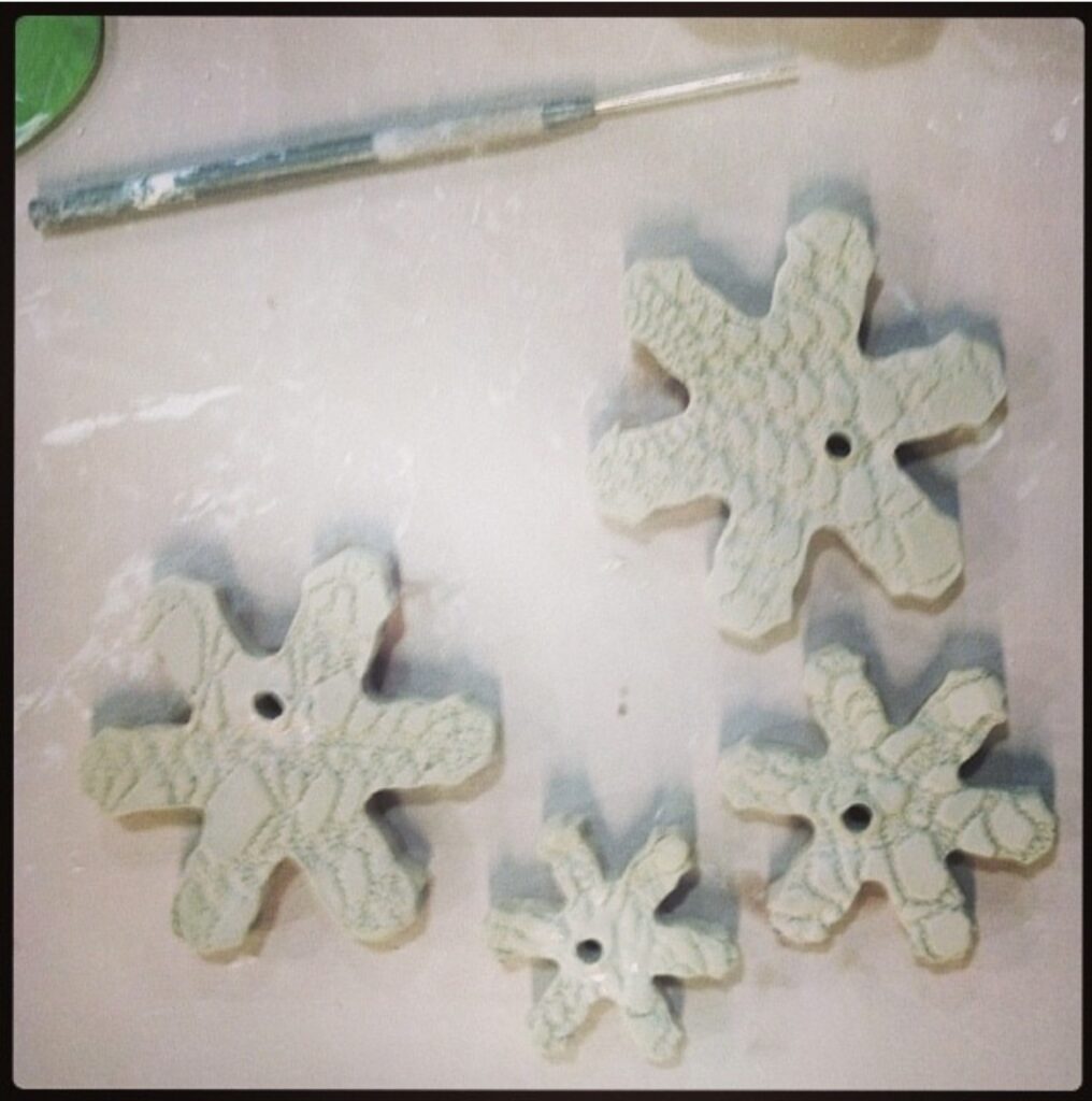 In 2013 and some in 2014, I was obsessed with creating a doily or lace look on my pieces. I used my grandmother’s doilies, so there was a special connection. I used the lace on mostly flatter pieces – plates, platter, etc. – the flatter surfaces made it easier to imprint the design as deep as possible on the piece. I tend to get obsessive about what I’m creating at certain moments, so I did end up kinda burning myself out on the repeated use of the doilies.